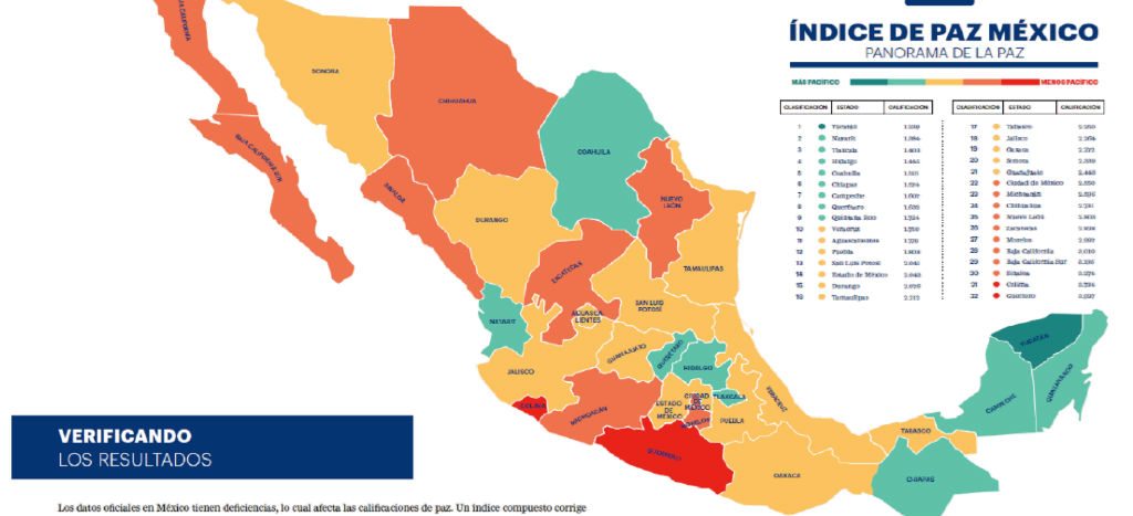 El IEP destacó que en los últimos seis años, los estados que han presentado mayor deterioro en materia de seguridad son Colima, Baja California Sur, Zacatecas, Oaxaca y Michoacán, debido al crecimiento en sus niveles de homicidio.