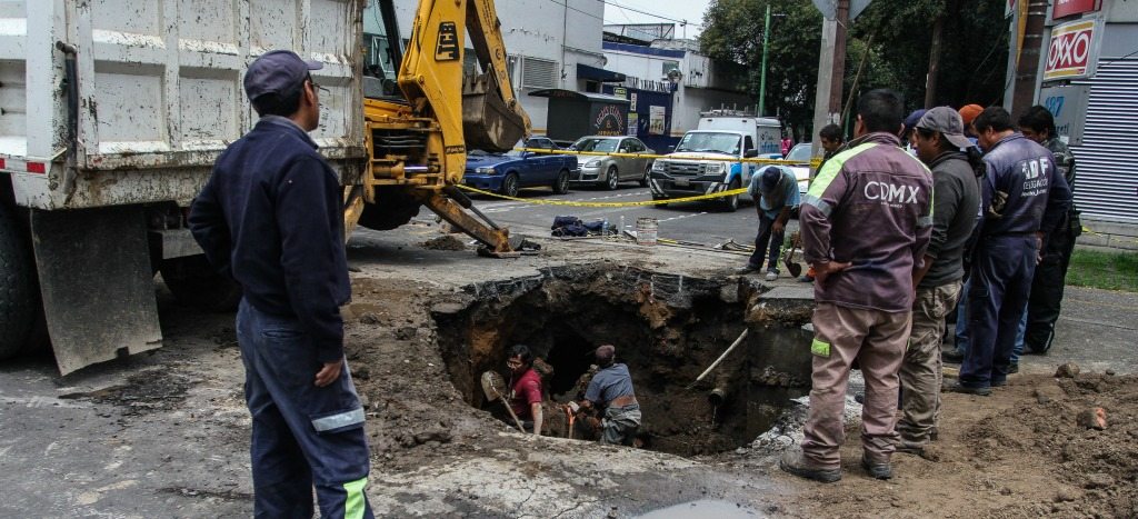 Este lunes en la madrugada se abrió un nuevo socavón en la Ciudad de México, en el cruce de Eje 8 Sur Popocatépetl y la calle de San Felipe, colonia Xoco, en la delegación Benito Juárez.
