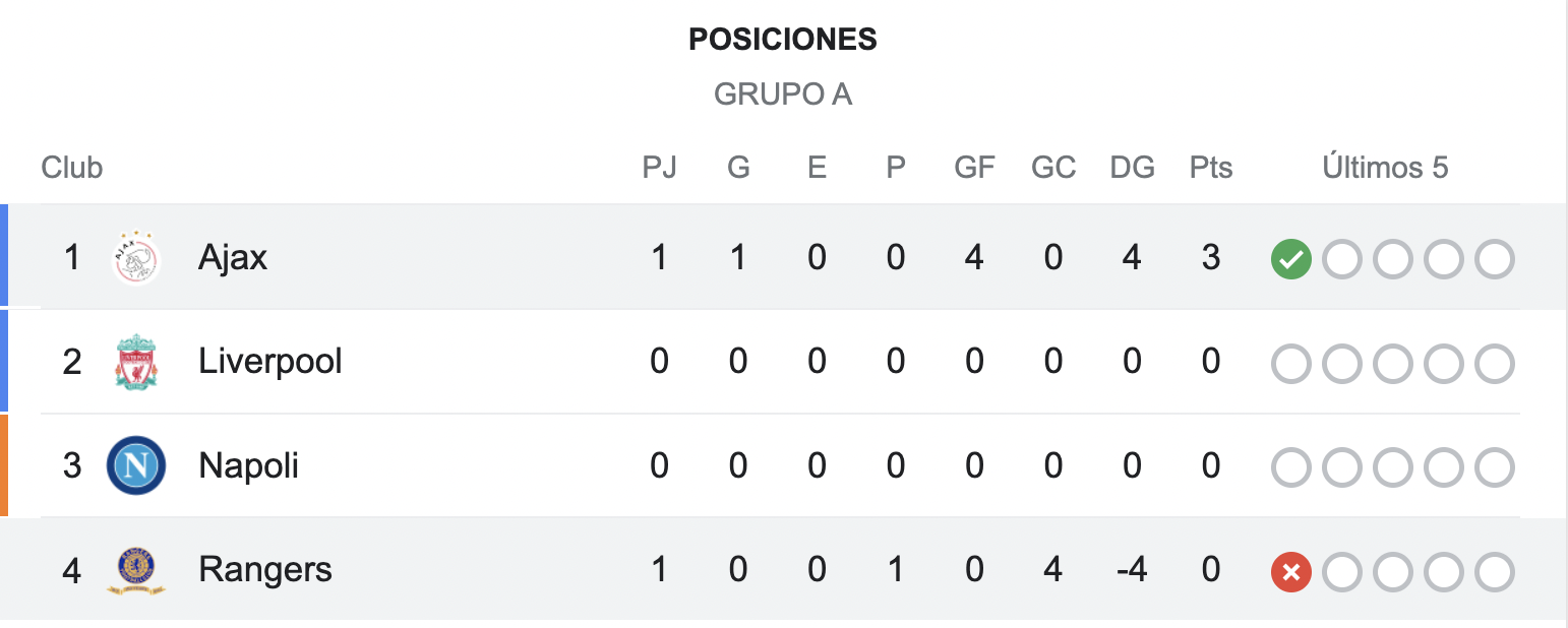 Importante victoria para Ajax, ya que comparte sector con Napoli, donde juega Hirving Lozano, y Liverpool, actual subcampeón, escuadras, que en teoría, estarán peleando por los primeros dos lugares.