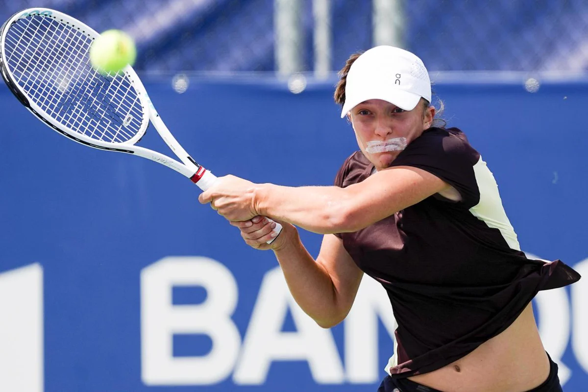 La tenista polaca Iga Swiatek, número uno del mundo, ha labrado una carrera exitosa basada en su duro trabajo durante los entrenamientos y, de manera muy peculiar, ahora se le puede observar con la boca tapada por una cinta.