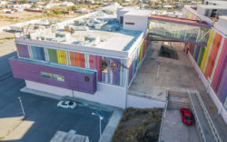 El Hospital Materno Infantil de Saltillo es un elefante blanco colorido por el rosa de las jardineras y unos listones de colores pastel que cuelgan en la fachada.