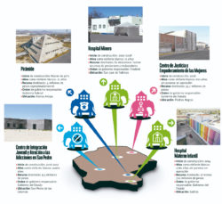 Los elefantes blancos presentados aquí son tres infraestructuras relacionadas con temas esenciales como salud, seguridad y protección a la mujer. Es un mapa de elefantes blancos localizados en La Laguna, Región Sureste, Carbonífera y en la frontera de Piedras Negras.