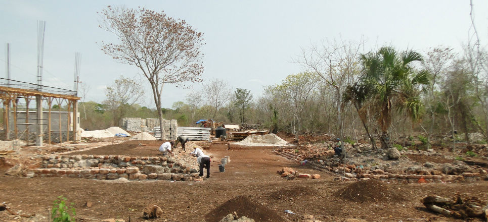 En 2012, explicó Alpizar Rodríguez, comenzó la construcción de una cancha de basquetbol y se eligió un área cubierta de pasto, al pie del puuc (sierra en lengua maya), pero al meter la maquinaria para cavar dieron con una piedra muy dura imposible de mover.