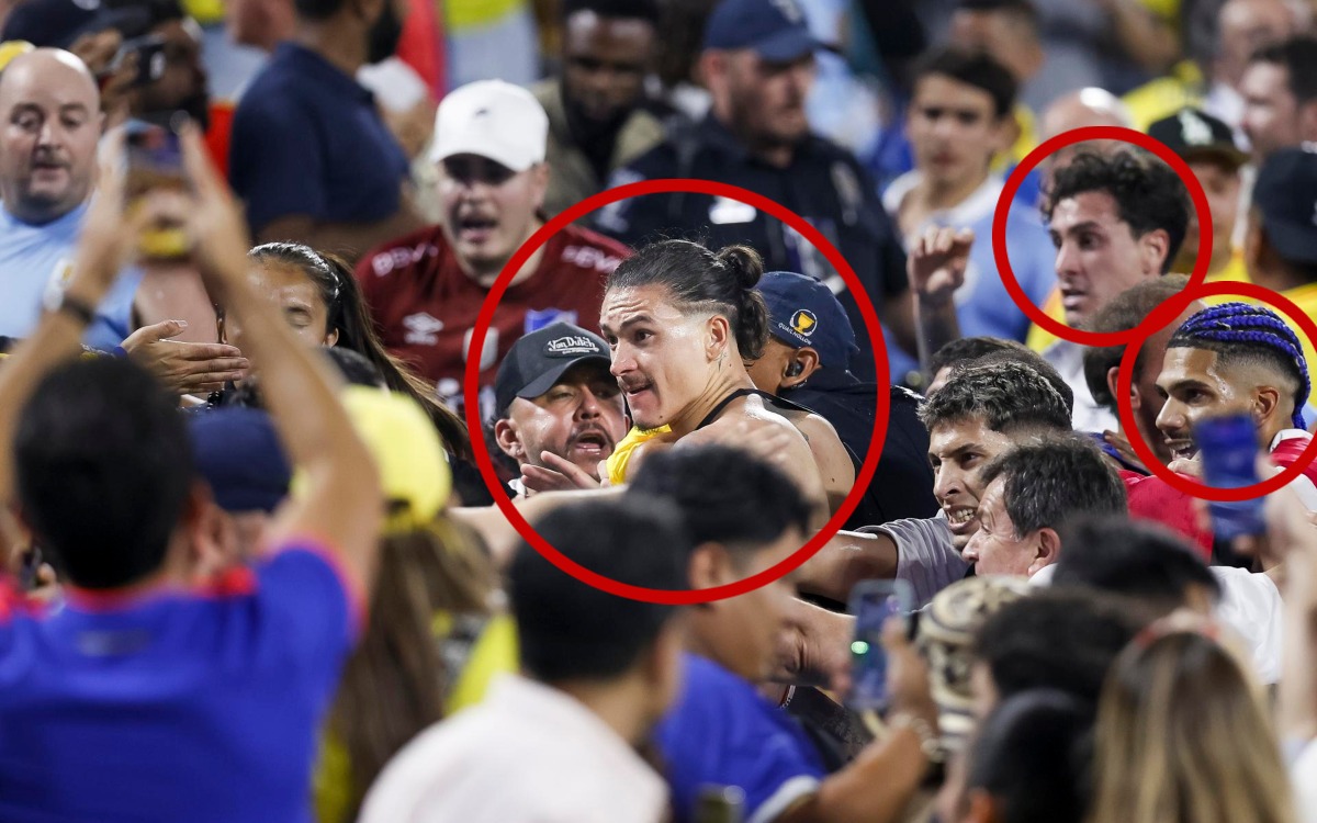 Tras el triunfo por 1-0 de Colombia contra Uruguay, los jugadores uruguayos Darwin Núñez, Ronald Araújo y José María Giménez, entre otros, saltaron a las gradas y se pelearon con unos aficionados colombianos que, según el capitán de La Celeste, tuvieron una actitud agresiva hacia sus familias.