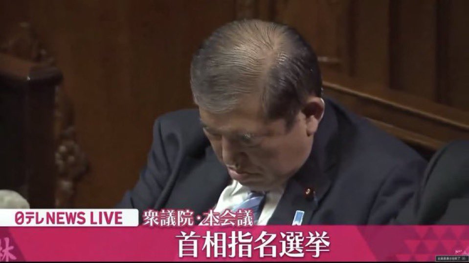 Mientras los parlamentarios nipones votaban quién sería el encargado de administrar Japón en la nueva legislatura, Ishiba aparece cabizbajo y con los ojos cerrados en un vídeo captado por la cadena de televisión nacional Nippon Television y que se convirtió en tendencia en la plataforma X en el país asiático.