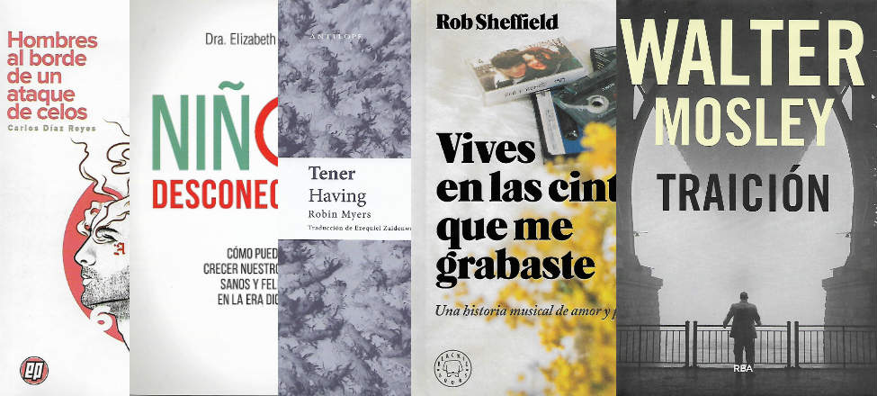Hay que tener temple para leer a Walter Mosley. Cada uno de los libros del maestro de la novela negra son inquietantes y perturbadores. Creenos, Traición no es la excepción. Vamos ahora con la Vives en las cintas que me grabaste, de Rob Sheffield, si te gusta la música y las historias de amor, este es el libro indicado. Vamos ahora con la poesía precisa y reflexiva de la joven Robyn Myers, quien se despliega a placer en Tener. Hacemos una pausa para poner sobre la mesa el sesudo estudio de la doctora Elizabeth Killbey, quien nos dice cómo regular el tiempo que los niños pasan ante las pantallas. Cerramos con los hilarantes cuentos Hombres al borde de un ataque de nervios, de Carlos Díaz Reyes.