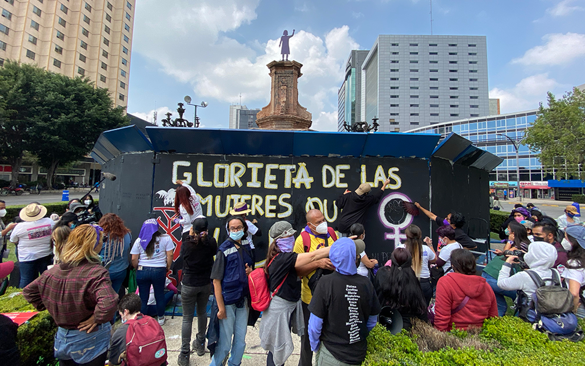 La “Glorieta de las mujeres que luchan” ha resignificado un espacio antes dedicado a Cristóbal Colón en Paseo de la Reforma; este trabajo de apropiación de lo público expresa el rechazo a la narrativa patriarcal y colonialista en México, explican colectivas.
