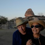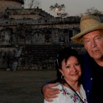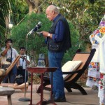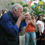 El escritor y periodista uruguayo Eduardo Galeano visitó en abril de 2009 el estado de Yucatán, donde presentó su libro Espejos y ofreció dos charlas. La primera de ellas la dio en el Teatro de la Universidad Autónoma de Yucatán, cuyo aforo rebasaron los asistentes, motivando que se colocaran pantallas gigantes en el teatro Peón Contreras, del otro lado de la calle, recuerda la empresaria y activista yucateca Olga Moguel. La segunda tuvo lugar en la Escuela de Agricultura Ecológica U Yits Ka’an, en el poblado de Maní, población donde, en un Auto de Fe de 1562, “se convierten en ceniza ocho siglos de literatura maya”, de acuerdo con el propio Galeano en su libro “Memoria del Fuego. Los Nacimientos”. (Fotos: Olga Moguel, Jesús Eduardo López y Helena Villagra)