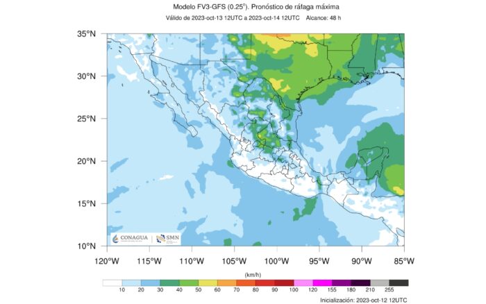 Finalmente, la Conagua detalló que habrá rachas de viento de 70 a 90 km/h en el Istmo de Tehuantepec, con oleaje de 2 a 4 metros de altura en el litoral de Veracruz y Golfo de Tehuantepec; y con rachas de 40 a 60 km/h y oleaje de 1 a 2 metros de altura en el litoral de Tamaulipas, Tabasco, Campeche y Yucatán.