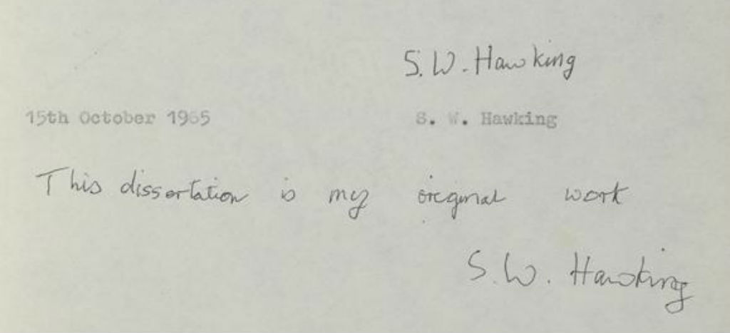 La tesis de Hawking -con una dedicatoria escrita a mano para su supervisor en la que se lee “esta disertación es mi trabajo original – SW Hawking”– lo puso en el camino para convertirse en uno de los científicos más reconocidos del mundo.