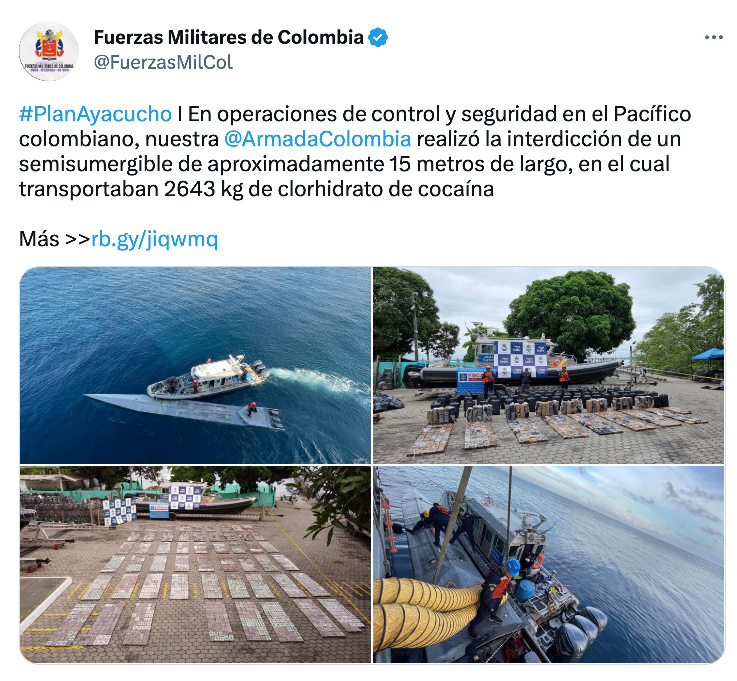 “Con este despliegue operacional que contó con el apoyo extranjero, se evitó que más de 87 millones de dólares ingresaran a las estructuras financieras de las organizaciones de narcotráfico que delinquen en el Pacífico colombiano y que más de seis millones de dosis circularan en el mercado ilegal internacional”, destaca en el comunicado del Ministerio.