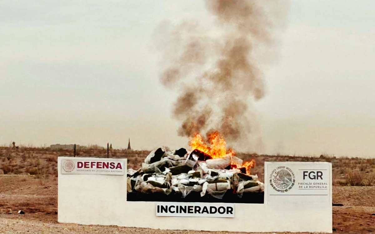 La incineración incluyó drogas aseguradas en 37 investigaciones de la FGR en Nuevo Casas Grandes y Ciudad Juárez, Chihuahua.