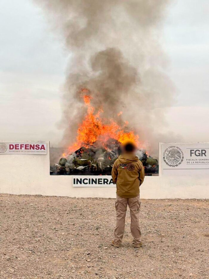 La Fiscalía General de la República (FGR), en coordinación con la Secretaría de la Defensa Nacional (Sedena), llevó a cabo la incineración de 1,8 toneladas de narcóticos, además de 353 unidades de psicotrópicos y objetos del delito en la frontera de México con Estados Unidos.