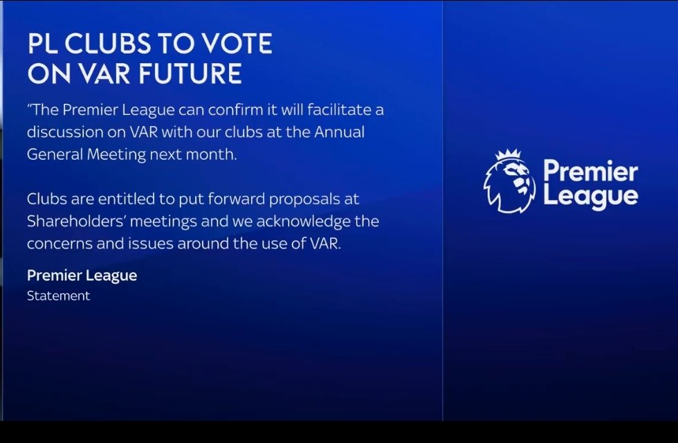 Los 20 clubes de la primera división de Inglaterra votarán en la Asamblea General Anual si eliminar o no el VAR; se necesita el respaldo de al menos 14 equipos para que la tecnología de videoarbitraje sea retirada de la liga.