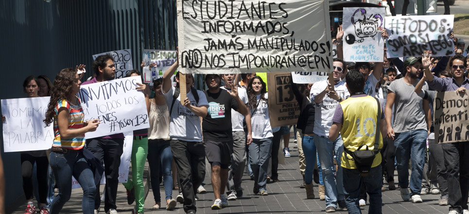 La protesta de los jóvenes de universidades privadas este viernes 18 de mayo significó una queja directa a diversos medios de comunicación por la cobertura realizada en la Universidad Iberoamericana Santa Fe, durante la complicada visita del candidato de la alianza Compromiso por México, Enrique Peña Nieto el pasado 11 de mayo.