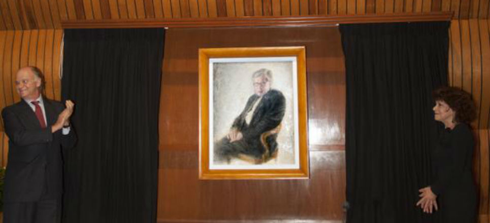 Se develó un retrato del escritor, en un acto encabezado por el historiador Enrique Krauze.