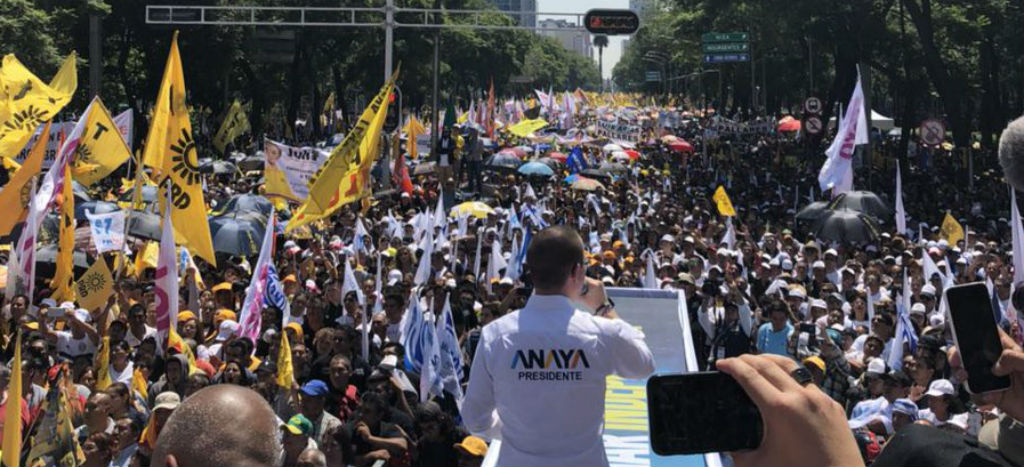 El sábado, Ricardo Anaya llevó a cabo mítines de cierre de campaña en municipios del Estado de México con tradición panista: Nicolás Romero, Cuautitlán Izcalli y Naucalpan. Ahí, ofreció incrementar al triple la pensión que reciben los adultos mayores.
