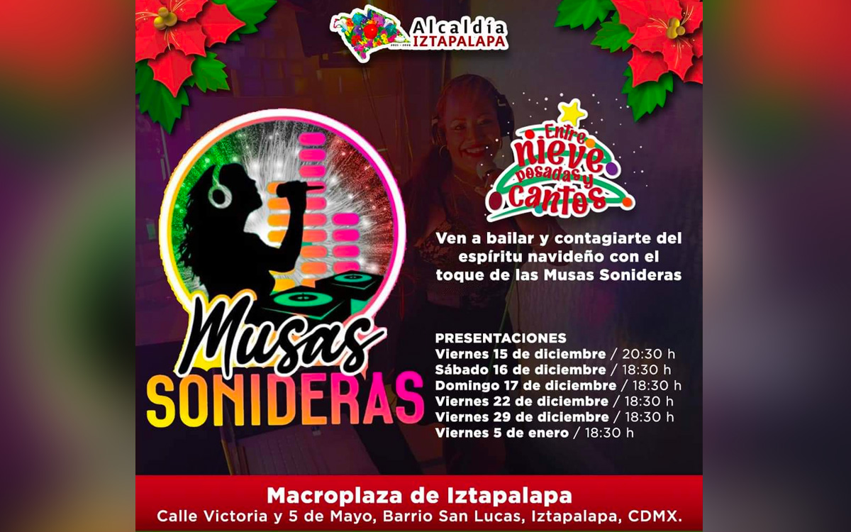 Iztapalapa es una de las alcaldías que no escatima para celebrar el año nuevo, pues el día 29 de diciembre, así como el 5 de enero del 2024, realizará un gran baile navideño donde estarán las Musas Sonideras.