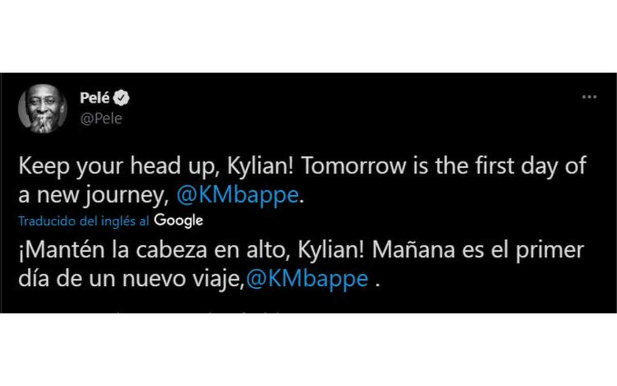“Mantén la cabeza en alto Kylian (Mbappé), mañana es un nuevo día de un nuevo comienzo”: Pelé | Tuit
