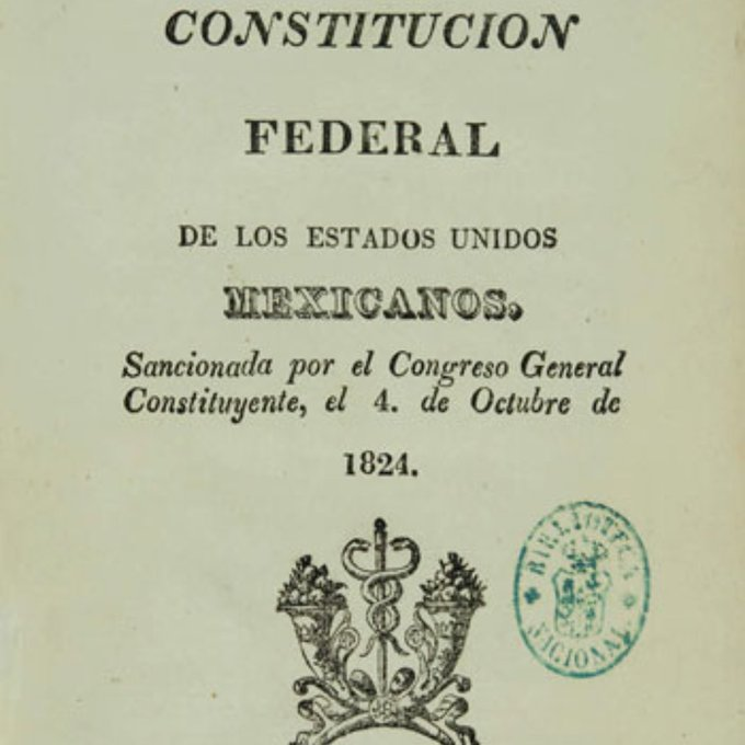 1824.- México promulga la primera Constitución Federal, que dividió al país en 19 Estados y 4 territorios.