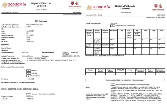 Los socios fueron identificados como David Vicente Salazar Gasca y George Mcphail Trouyet. También están identificados los representantes y apoderados legales.