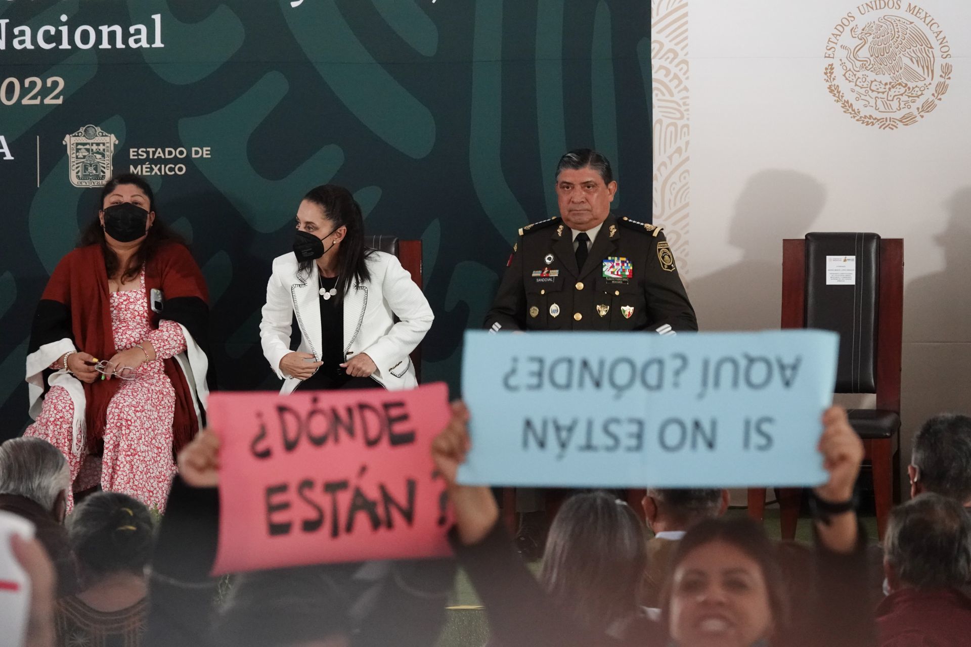 Familiares y víctimas de violaciones a derechos humanos cometidas por el Ejército reclamaron en el acto oficial en dos ocasiones, mientras el secretario de la Defensa Nacional, Luis Cresencio Sandoval, daba un discurso en el que justificó las acciones del Ejército en el pasado y reconoció la labor de personal castrense.