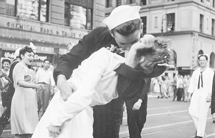 En Nueva York, un marinero y una enfermera se besaban frente a cientos de personas que habían salido a las calles a celebrar.
