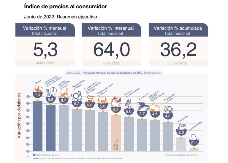 En dicho reporte se dio a conocer que el IPC subió un 5.3% en junio liderado por los rubros salud y vivienda.