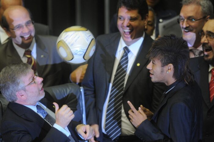 El balón con el autógrafo del famoso atacante de la selección brasileña y del PSG fue un regalo que una delegación del club Santos le entregó en abril de 2012 a la Cámara de Diputados tras una sesión solemne para homenajear el centenario del club paulista, del que han surgido jugadores como Pelé, Neymar, Robinho y Rodrygo Goes.