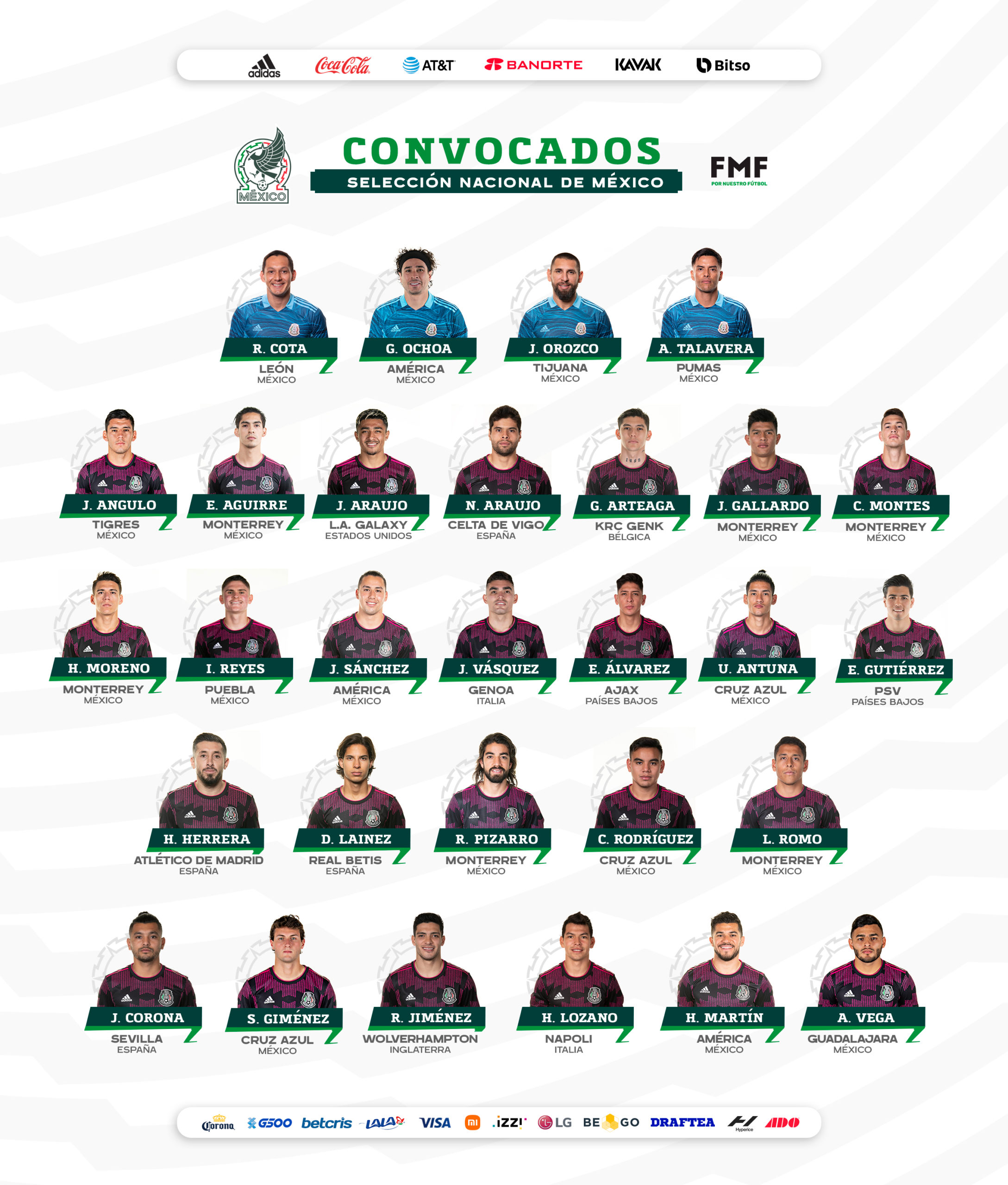 En la convocatoria, que no sufrió grandes cambios respecto a los anteriores llamados, el director técnico Gerardo “Tata” Martino tuvo que prescindir del mediocampista Andrés Guardado, del delantero Rogelio Funes Mori y del zaguero Julio César Domínguez debido a lesiones.