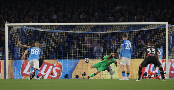 Cuando parecía que el Napoli ya no podía crear peligro, el árbitro marcó penal por una mano de Tomori dentro del área. Kvaratskhelia tomó el disparo e intentó colocar el balón pegado al poste, pero era la noche de Maignan y con una gran estirada mantuvo su arco a cero.