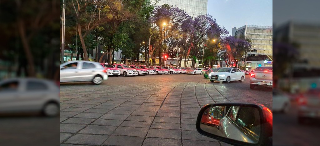La mañana de este miércoles, un grupo de taxistas se manifiesta en las inmediaciones del Ángel de la Independencia, en rechazo a las aplicaciones (apps) de transporte como Uber.