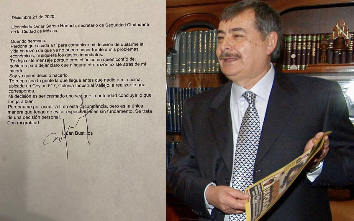 El periodista Juan Bustillos, director y dueño de la revista Impacto, publicó el lunes su última columna y dejó una carta en la que explicaba los motivos que lo llevaron a quitarse la vida ese mismo día.