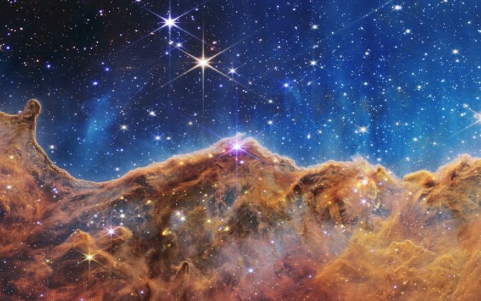 A esta se suman los Acantilados cósmicos en la Nebulosa Carina, capturadaos por Webb. Se encuentra a 7 mil 600 años luz de distancia y se caracterizan por una radiación ultravioleta y vientos estelares de estrellas jóvenes calientes y extremadamente masivas.