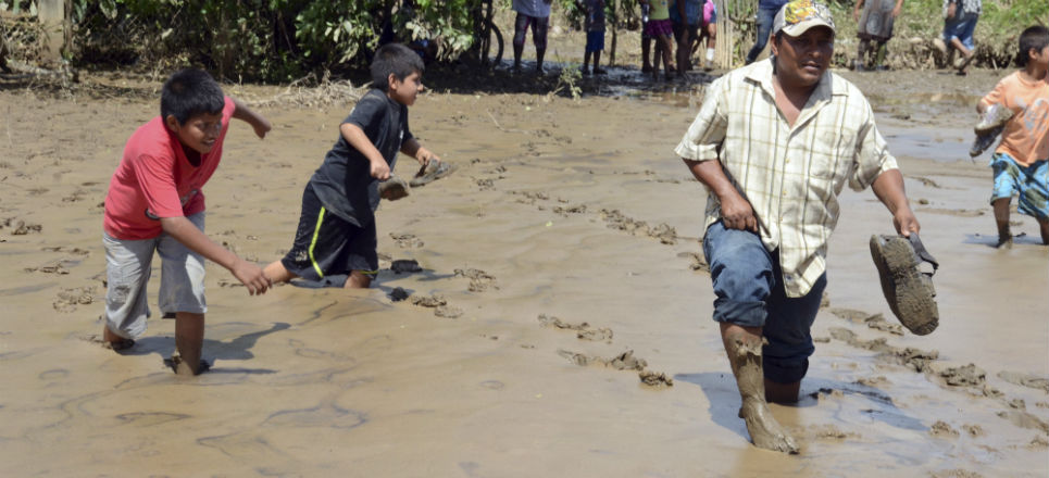 Montones de lodo por donde sea. Por eso, todos los habitantes de esta comunidad caminan con los pies sucios, algunos con huaraches, otros descalzos. El lodo puede llegar hasta las rodillas y, pese a su suciedad, varios luchan por sacarlo de sus hogares o lo que queda de ellos.