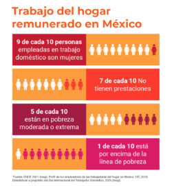 Desde 2019, la Ley Federal del Trabajo reconoce ciertos derechos laborales para las trabajadoras del hogar en México: jornadas de máximo ocho horas, existencia obligatoria de un contrato escrito, seguridad social, licencia de maternidad y vacaciones pagadas. Estas reformas se hicieron tras la ratificación en el Senado mexicano del Convenio 189 de la Organización Internacional del Trabajo (OIT), que establece y defiende los derechos de las y los trabajadores del hogar.