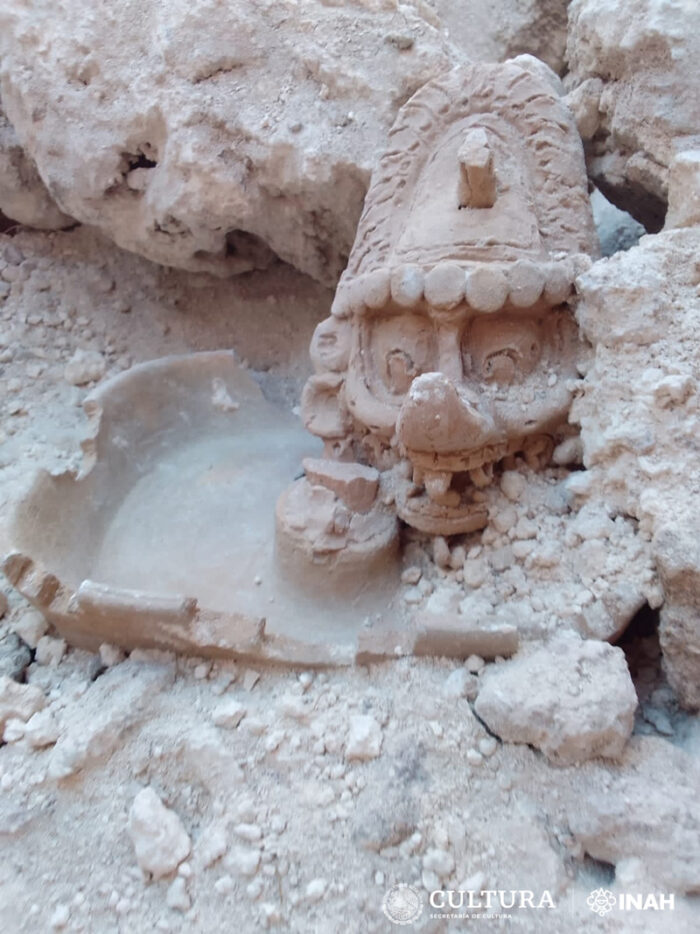 El antropólogo detalló que la representación de dicha deidad prehispánica se halló como parte de una urna, en cuyo cuerpo muestra el rostro de una deidad, posiblemente, solar, y en la tapa, la cabeza del dios K’awiil.
