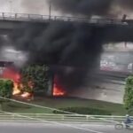 En redes sociales, circuló un video en el que se puede ver a varias personas que intentan ayudar a salir por el techo del autobús a los pasajeros atrapados.