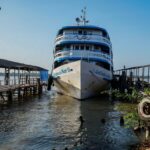 Una barcaza de tres alturas acaba de atracar a orillas del río Guamá. Lleva banderas de varios países, a babor y estribor, y pancartas con un mensaje claro en letras rojas y negras: "Exigimos financiación".