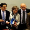 Durante la conferencia magistral de inauguración de la Cátedra Miguel Ángel Granados Chapa, en la Universidad Autónoma Metropolitana Unidad Cuajimalpa, Carmen Aristegui conversó con los alumnos y maestros e la casa de estudios, junto con el titular de la Cátedra , el periodista José Reveles.