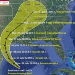 Beryl se desplaza ahora como tormenta tropical sobre el Golfo de México; pese al desvío del ciclón, causará lluvias en varios estados de México.