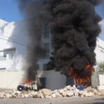 Durante una protesta, miembros de la Federación de Estudiantes Campesinos y Socialistas de México lanzaron cohetones al interior del Palacio de Justicia de Iguala
