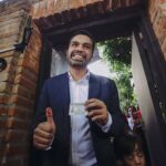 Álvarez Máynez llegó hasta la urna con su hijo Luciano, a quien le habló del sistema electoral mexicano.
