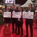 La cineasta mexicana Yulene Olaizola y parte del equipo de producción del largometraje mexicano 'Fogo', en la 65 edición de Cannes, mostraron en la alfombra roja pancartas a favor del movimiento 'Yo Soy 132'. (Fotos: Twitter)