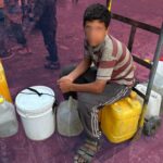 En el abrasador calor del verano de Gaza , los niños tienen que esperar en largas colas para acceder a cantidades mínimas de agua. Miles de familias se ven obligadas a depender del agua de mar sucia para sus necesidades diarias.